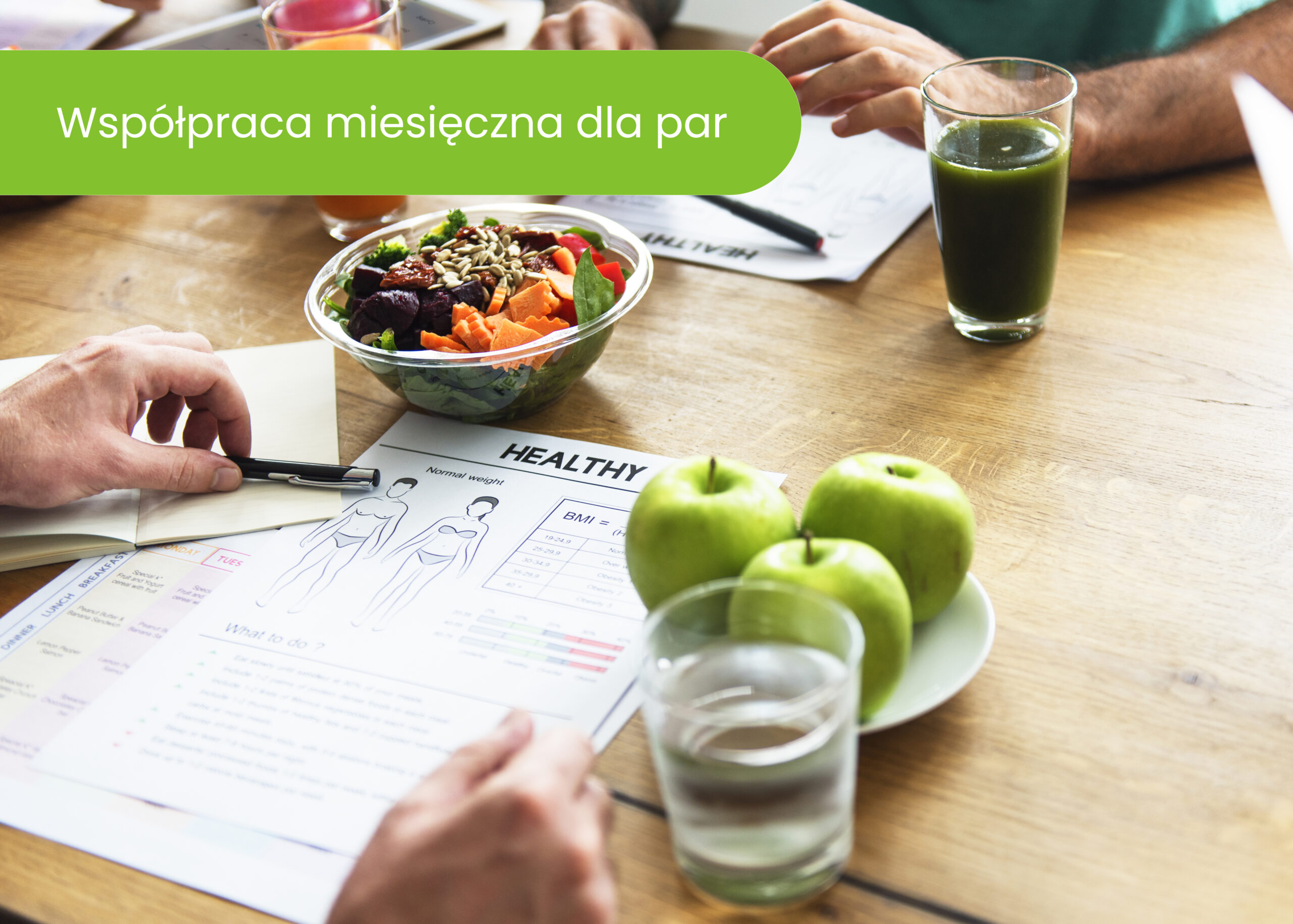 Dla tych, którzy wspólnie zaczynają swoją przygodę ze zdrowym odżywianiem. Podczas okresu współpracy wspólnie ustalamy plan działania, układam dla Was spersonalizowaną dietę. Dodatkowo uczę Was jak jeść smacznie i zdrowo. Średnia realna utrata masy ciała podczas 1- miesięcznego okresu współpracy to 3-4 kg